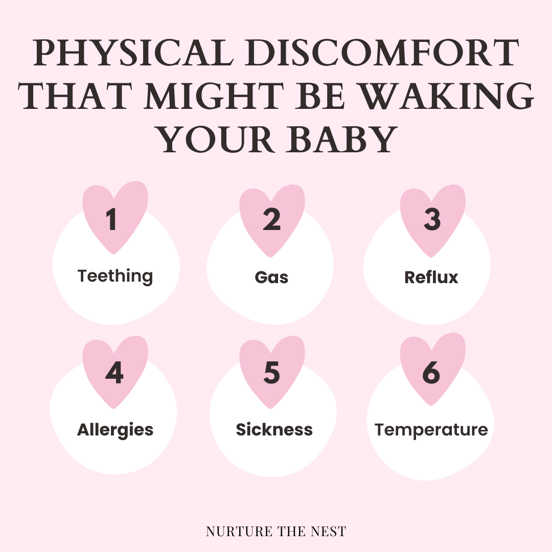 Discomfort from these physical issues can make it hard for babies to sleep through the night.
